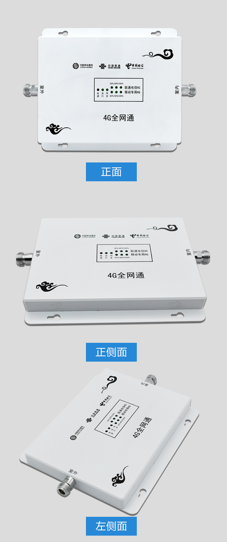 產品描述:頻段:1800+1900 1800+2600 增強:移動聯通電信三網4G流量上網+聯通移動2G通話信號