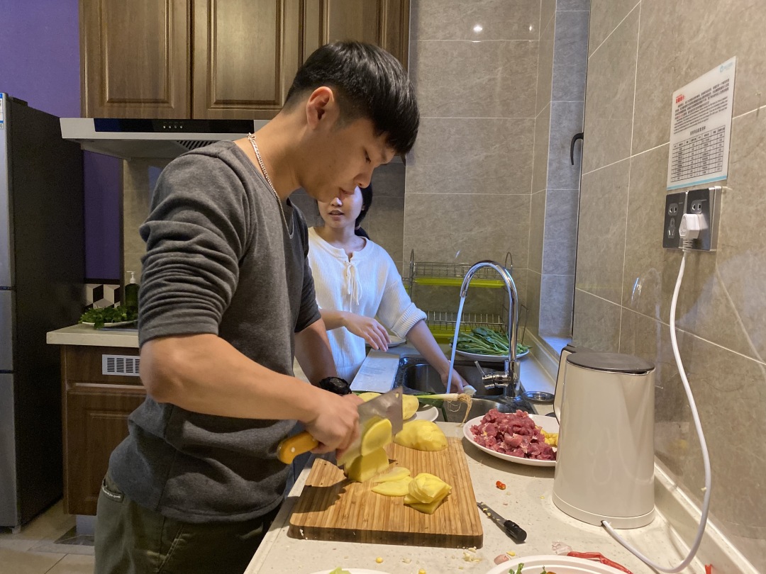 切菜刀工超贊的小伙們忙得不亦樂乎