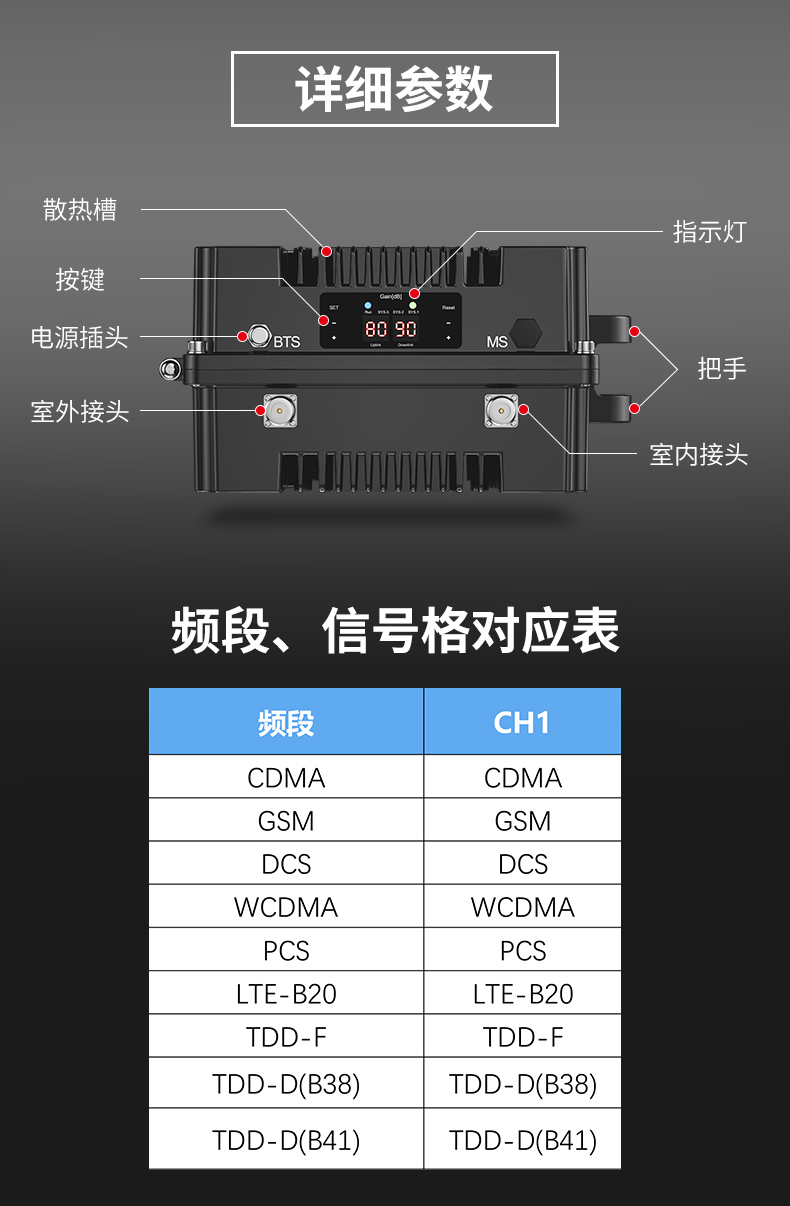 產(chǎn)品名稱:三頻手機(jī)信號放大器4G5G覆蓋工程直放站酒店商場地下室隧道