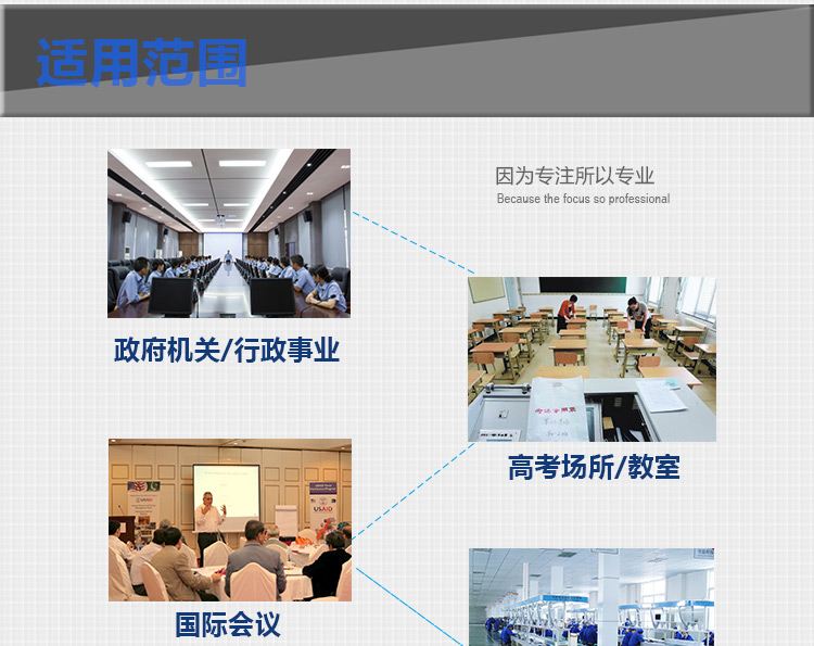 手機信號屏蔽器主要針對各類考場、學(xué)校、加油站、教堂、法庭、圖書館、會議中心(室)、影劇院、醫(yī)院、政府、金融、監(jiān)獄、公安、軍事重地等禁止使用手機的場所。 據(jù)了解,現(xiàn)在市場上的手機信號屏蔽器可以限制自發(fā)射臺500M米以外的手機信號。屏蔽半徑可調(diào),覆蓋范圍達(dá)到30㎡以上,手機信號屏蔽器僅僅只能屏蔽手機信號,而不對其它電子設(shè)備產(chǎn)生影響。節(jié)省電能,功率為12W--480W。