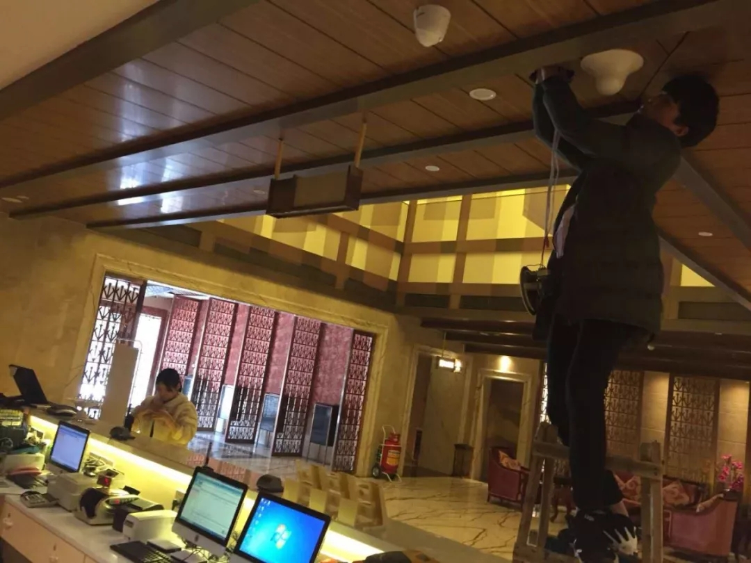 2、然后直接放線到窗戶,拉線在前臺天花板位置安裝一個吸頂天線;