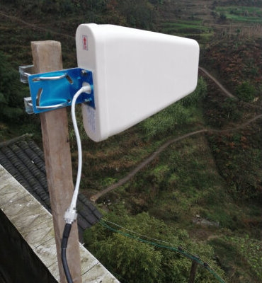1、首先在樓頂找到空曠的位置,要找到信號相對好的方向安裝室外天線;把天線用竹竿架高安裝,因為在山區地勢比較復雜,盡可能把天線安裝高一點,這樣接收信號也更穩定。
